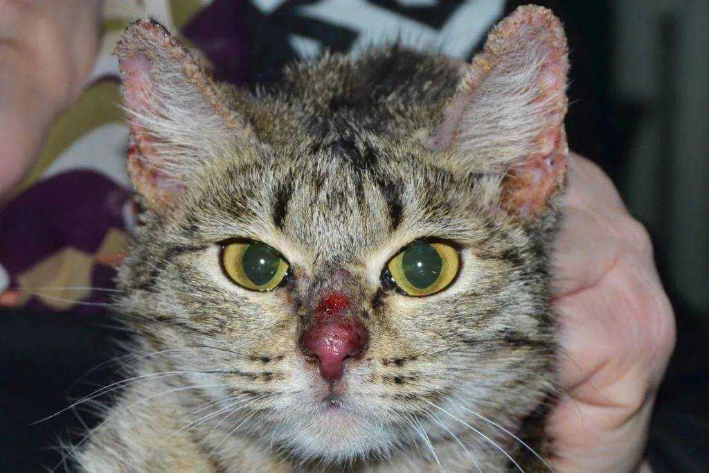 Воспаление слизистых глаз, носа, ротовой полости – из-за аллергии у кошки могут появиться язвы на слизистой рта, слезотечение, конъюнктивит. Если воспалятся слизистые носа, кошка начнёт чихать, у неё появятся слизистые выделения из носовой полости. Глаза кошки могут покраснеть и воспалиться, если аллергическая реакция затянется, пострадает шерстный покров вокруг глаз.