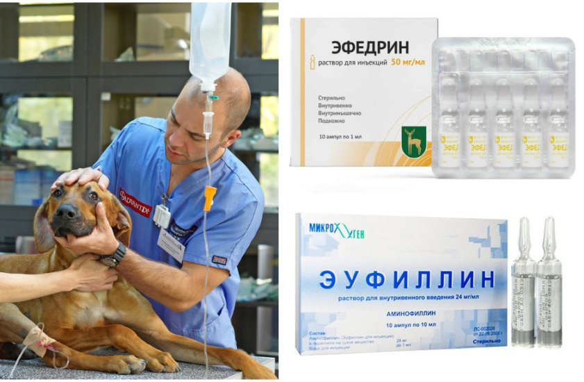 Для поддержания сердечной деятельности собаке назначают Кофеин, Кордиамин. При аллергической этиологии заболевания больной особи могут быть назначены Аминазин, Супрастин, хлористый кальций.