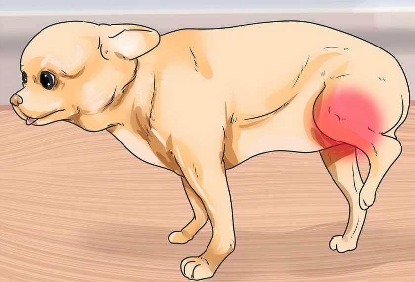 Прихрамывание, собака иногда припадает на пораженную лапу. В тяжелых случаях животное постоянно может ходить в «полуприседе».