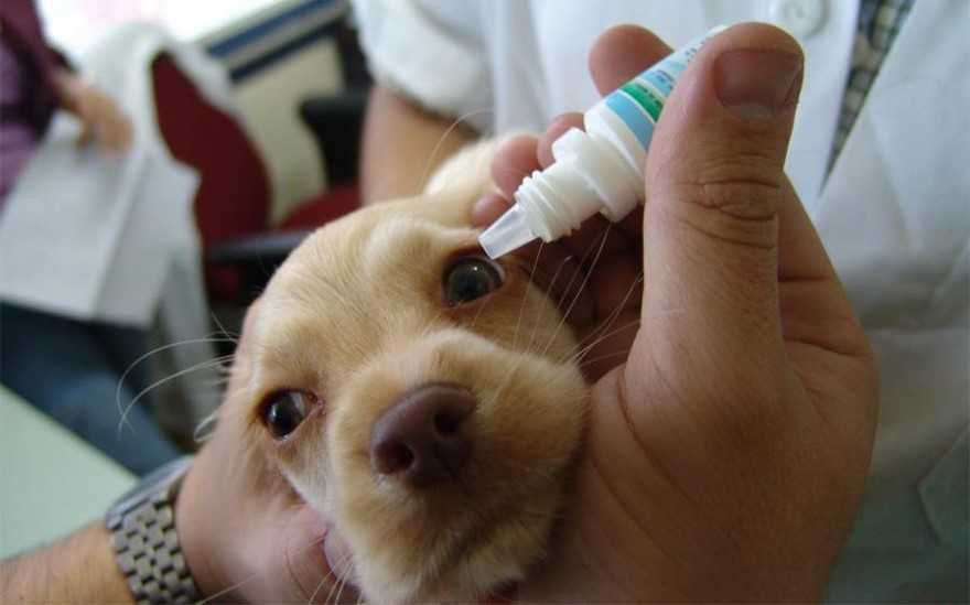 - щенкам и собакам закапывают 1-2 капли в каждый глаз также 4 раза в сутки;
