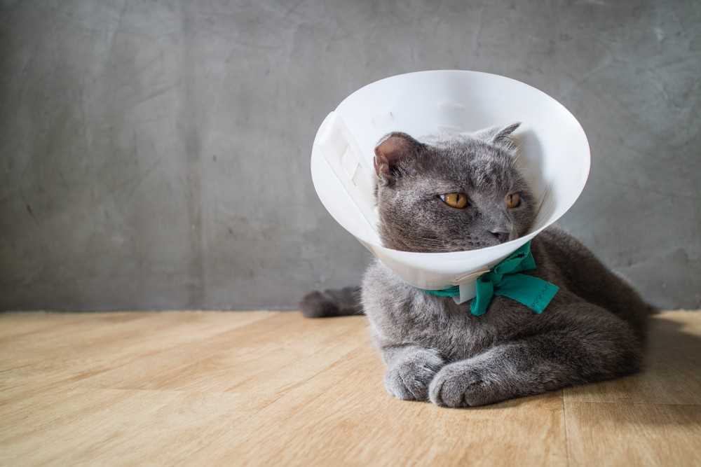 Для того чтобы кошка не смогла нейтрализовать действие нанесенных на кожу лекарств или отравиться ими при слизывании, на нее надевают Елизаветинский воротник.