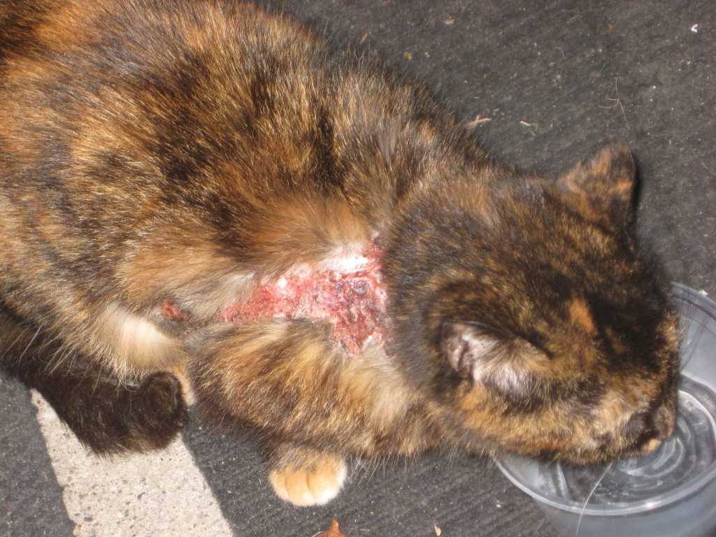 - кошка постоянно старается почесать больное место, что провоцирует появление царапин и ран;
