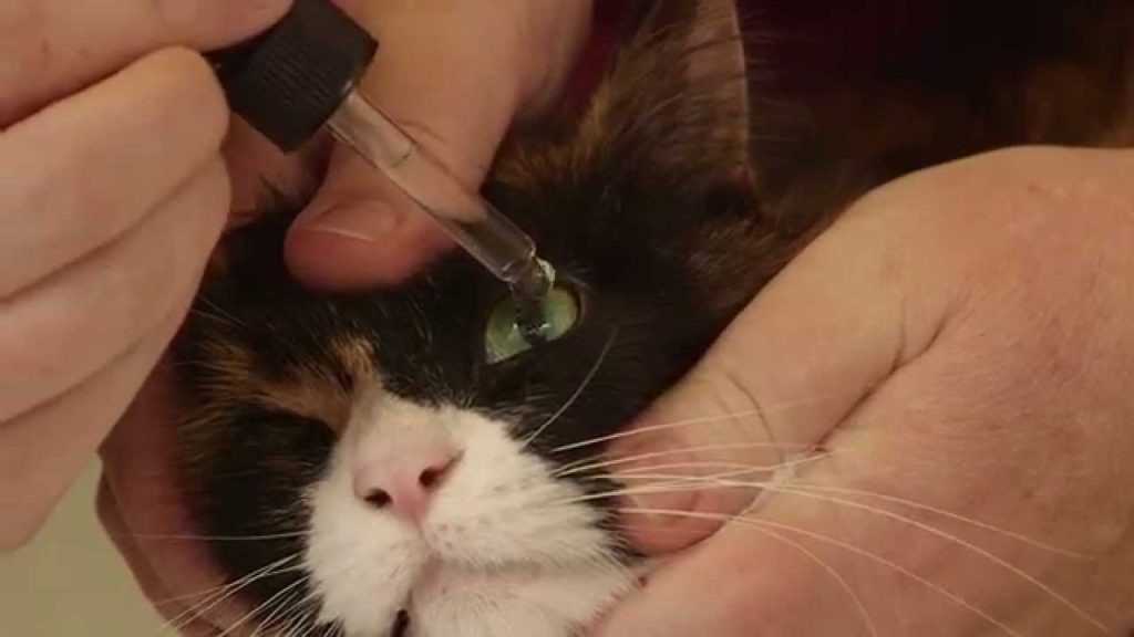 Чаще всего назначается антибактериальная мазь, её нужно закладывать за веко (средство само распределится по конъюнктиве). Однако владельцы кошек испытают немало хлопот, кошка не будет сидеть спокойно, пока в её глазах проводят какие-то манипуляции. В этом плане удобнее капли.
