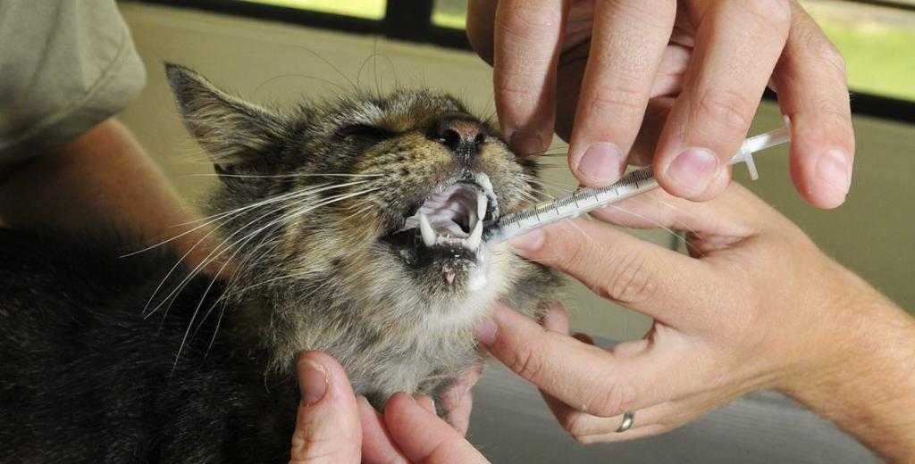 На помощь здесь придет знание скелета котов. Как вы знаете, зубы у кошки расположены не по всему периметру рта — у основания языка их нет. Таким образом, если вы аккуратно оттяните кошачьи губы вниз, у вас появится возможность беспрепятственно и, что самое главное, безболезненно для кошки, вставить кончик шприца в рот животному и ввести туда раствор. За один раз нужно вливать не более 2 мл раствора, а подобные манипуляции нужно проводить 3-4 раза в день при появлении первых признаков отравления. Как только состояние вашего питомца улучшится, нужно начать давать целые или разломленные на половинки таблетки.