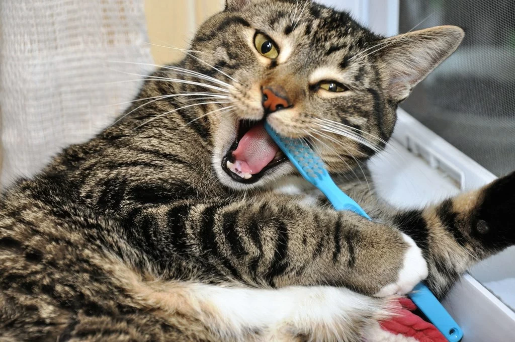В арсенале кошачьей гигиены должна быть специальная зубная паста для животных, которая есть в ветеринарных магазинах, и зубная щетка – все как у людей. В качестве пасты требуется исключительно специальное средство, которое порекомендует специалист. Обычные человеческие зубные пасты не подходят по двум причинам: они содержат фтор соединения и требуют тщательного ополаскивания, кошки это делать не умеют.