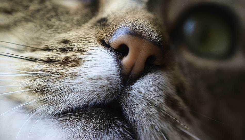 Именно поэтому для кошки нос — это не только орган обоняния. Благодаря ему она определяет температуру предмета, направление ветра и даже, наряду с вибриссами, она осязает носом.