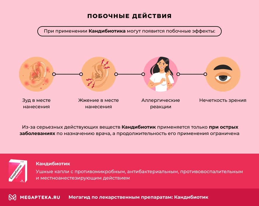 - Кандибиотик показан для лечения аллергических и воспалительных заболеваний уха у взрослых и детей с 6 лет.