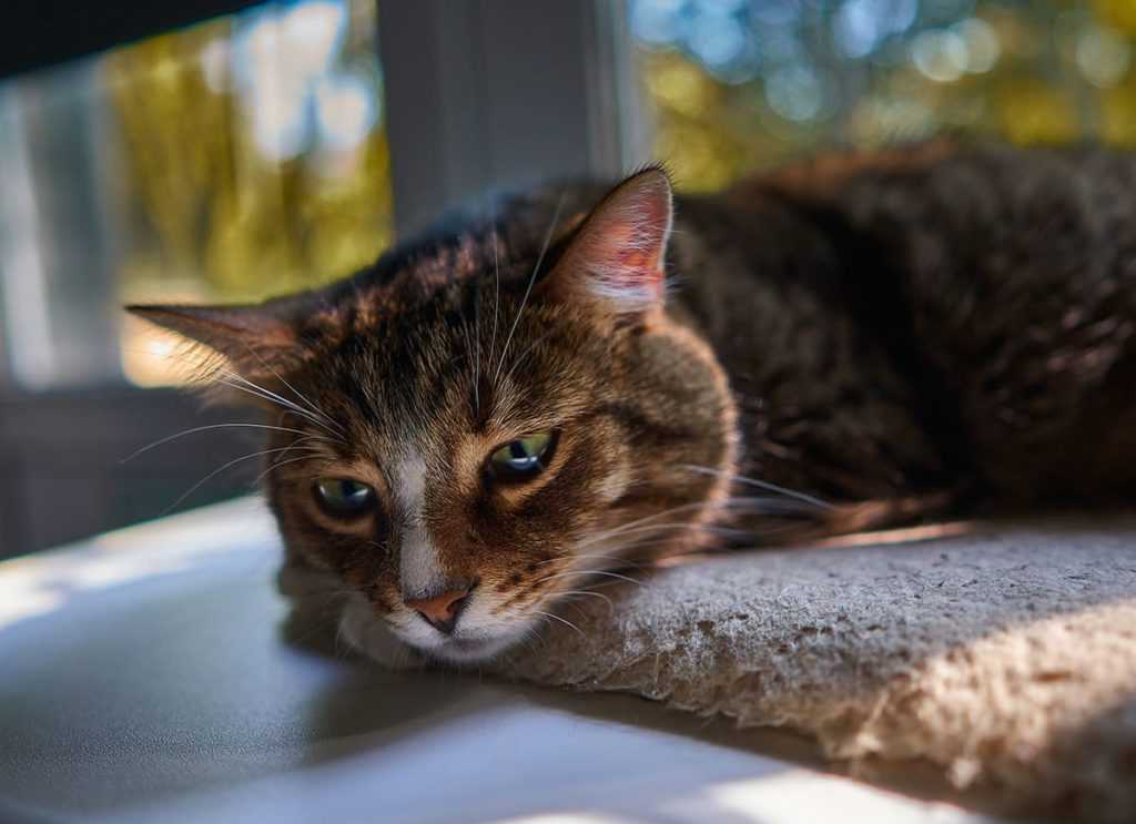Как и собаки, коты часто высовывают язык, когда им очень жарко. Если вы увидели, что кошка высунула язычок, начала часто дышать и находится на солнце, перенесите ее в прохладное место. За счет пота, который выделяется через ротовую полость, животное пытается урегулировать тепловой обмен. Но если у него это не выйдет, оно может получить тепловой удар.