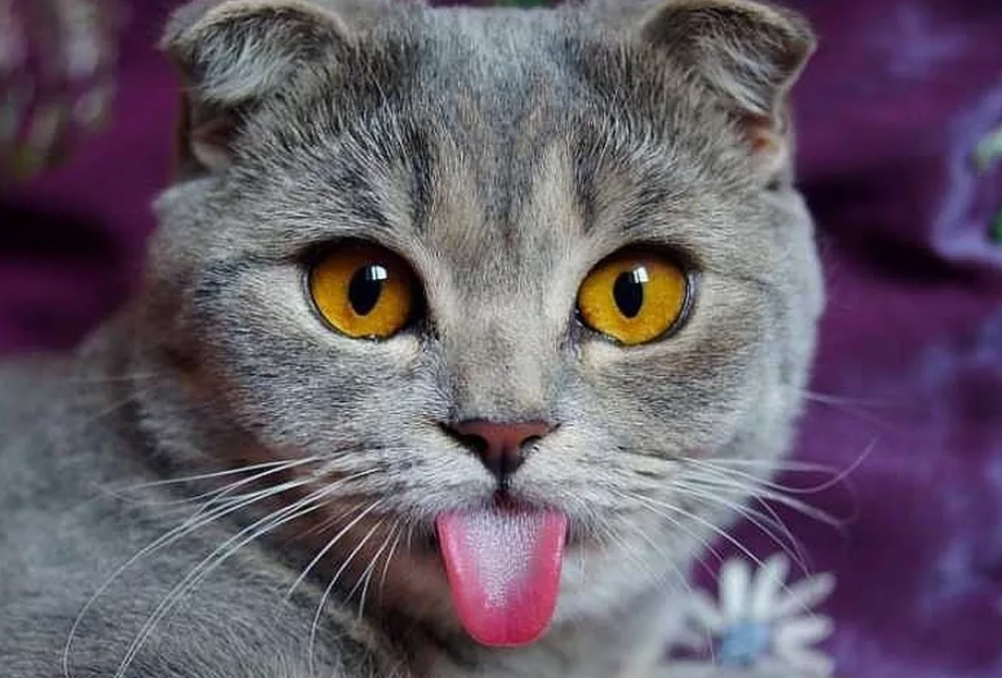 Почему кошка морщит или скручивает кончик языка?