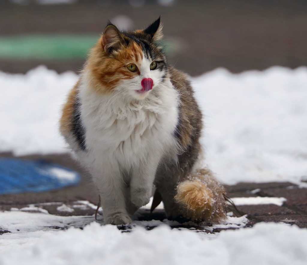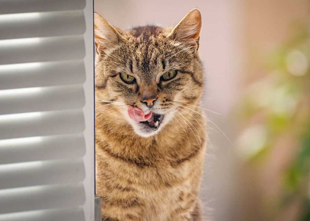 Почему кошка оставляет кончик языка высунутым после облизывания?