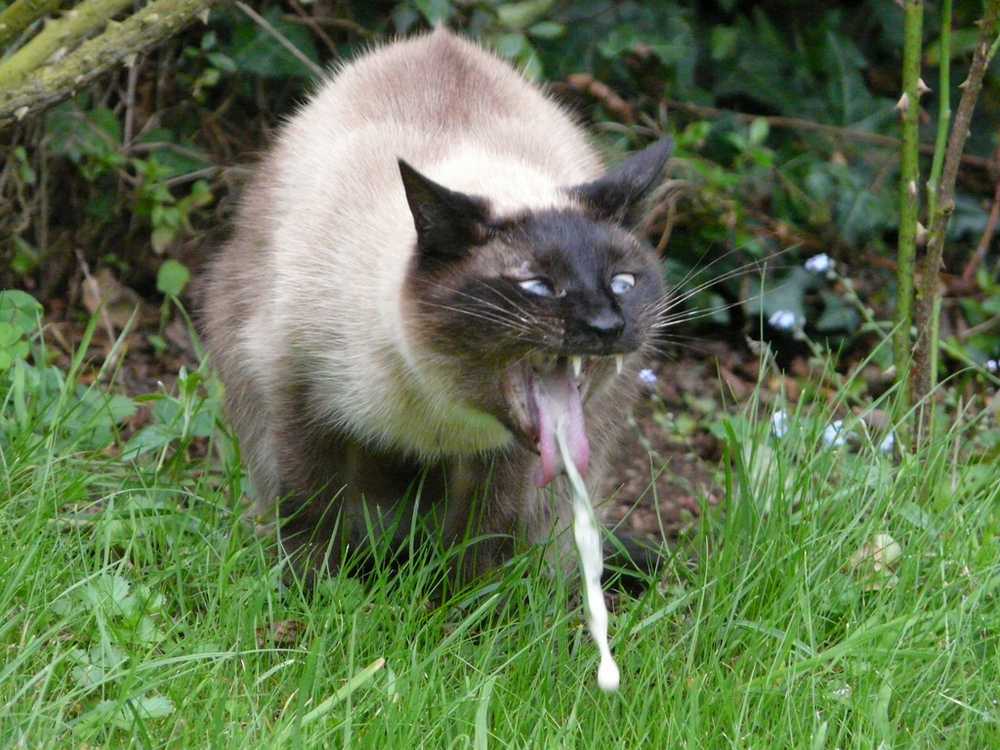Если кошка срыгивает после заглатывания травы, то такое явление специалисты считают физиологической нормой и не относят к симптомам хронической рвоты. Однако кот также рвет и при глистных инвазиях, если владельцы животного не проводят регулярную дегельминтизацию.