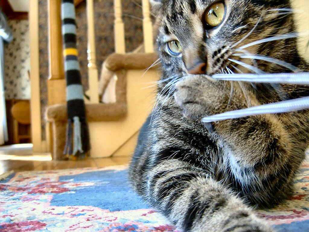 Старайтесь как можно больше и чаще играть с питомцем, поскольку это самый надежный способ расходования энергии. Обязательно используйте для игры безопасные, привычные кошке аксессуары. В таком случае, у питомца будет возможность развлечься самостоятельно и привычным образом, даже если вас не будет дома.