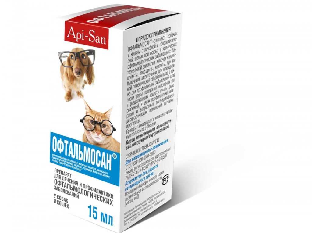 Препарат используется при лечении конъюнктивитов, служит отличной профилактикой для общей гигиены (в частности, промывании глаз у животных). Выпускается в удобных пластмассовых флаконах-капельницах по 10 мл. Предварительно перед закапыванием мягким тампоном, смоченным данным средством, протирают и удаляют скопившийся секрет, а затем закапывают коту в глаза через каждые 6 часов.