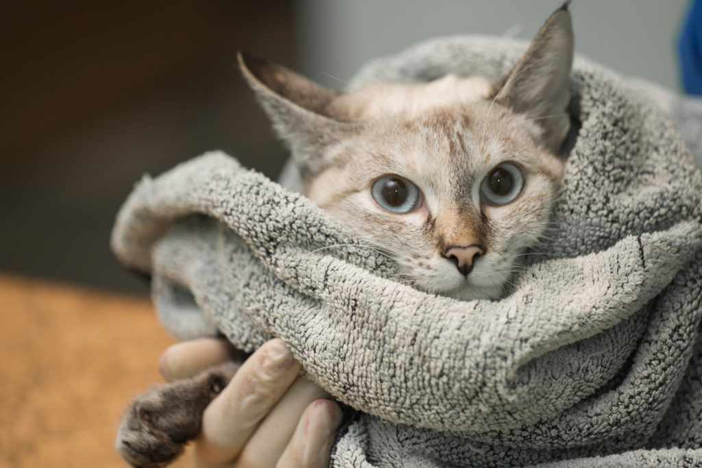 При себе нужно иметь переноску, в которой питомец поедет домой. Положите внутрь теплый плед или другую вещь, хранящую знакомый запах — так коту будет спокойнее находиться вне дома.