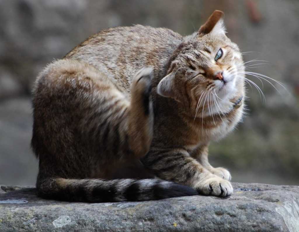 - Сильно чешет место боли, применяя когти и царапая тонкий слой кожи;