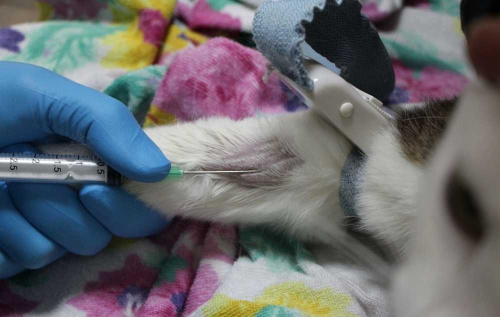 При симптомах эклампсии ветеринар берет кровь у кошки, чтобы определить уровень кальция.