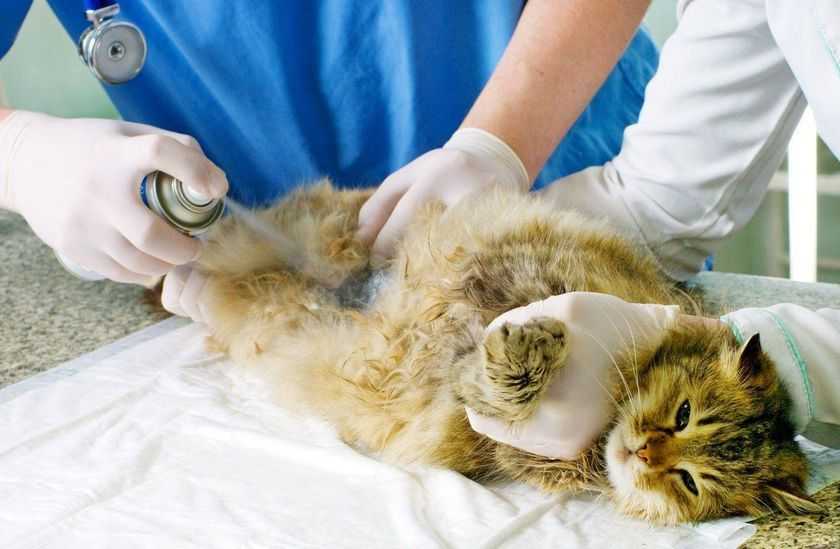 Грыжесечение выполняется под общим или местным наркозом, перед его проведением кошке проводят анализы для определения общего состояния здоровья. При наличии в организме воспалительного процесса плановую операцию не проводят.