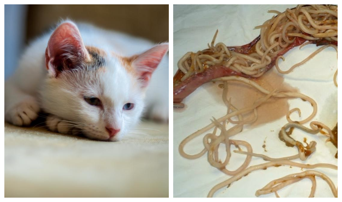 - присутствие паразитов в организме. Это существенно подрывает здоровье питомца. Продукты жизнедеятельности глистов и других «заселенцев» отравляют организм, вызывая интоксикацию. Паразиты создают условия, при которых животное не получает достаточного питания. Всё, что съедает кошка, перерабатывается обитателями кишечника, поэтому животное болеет, худеет и плохо растёт.