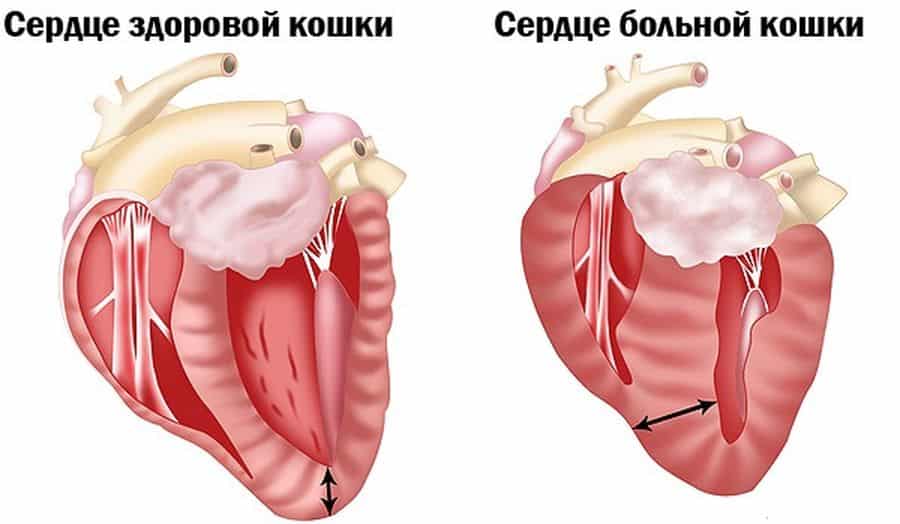 Кардиомиопатия у кошек препятствует нормальному сокращению сердечной мышцы, что снижает поступление кислорода в кровь, нарушает питание тканей и органов. При патологии наблюдается уплотнение стенок желудочка. При этом сокращается объем камер и происходит нарушение функций миокарда, что приводит к патологическому изменению в работе сердечной мышцы, ее быстрому износу.