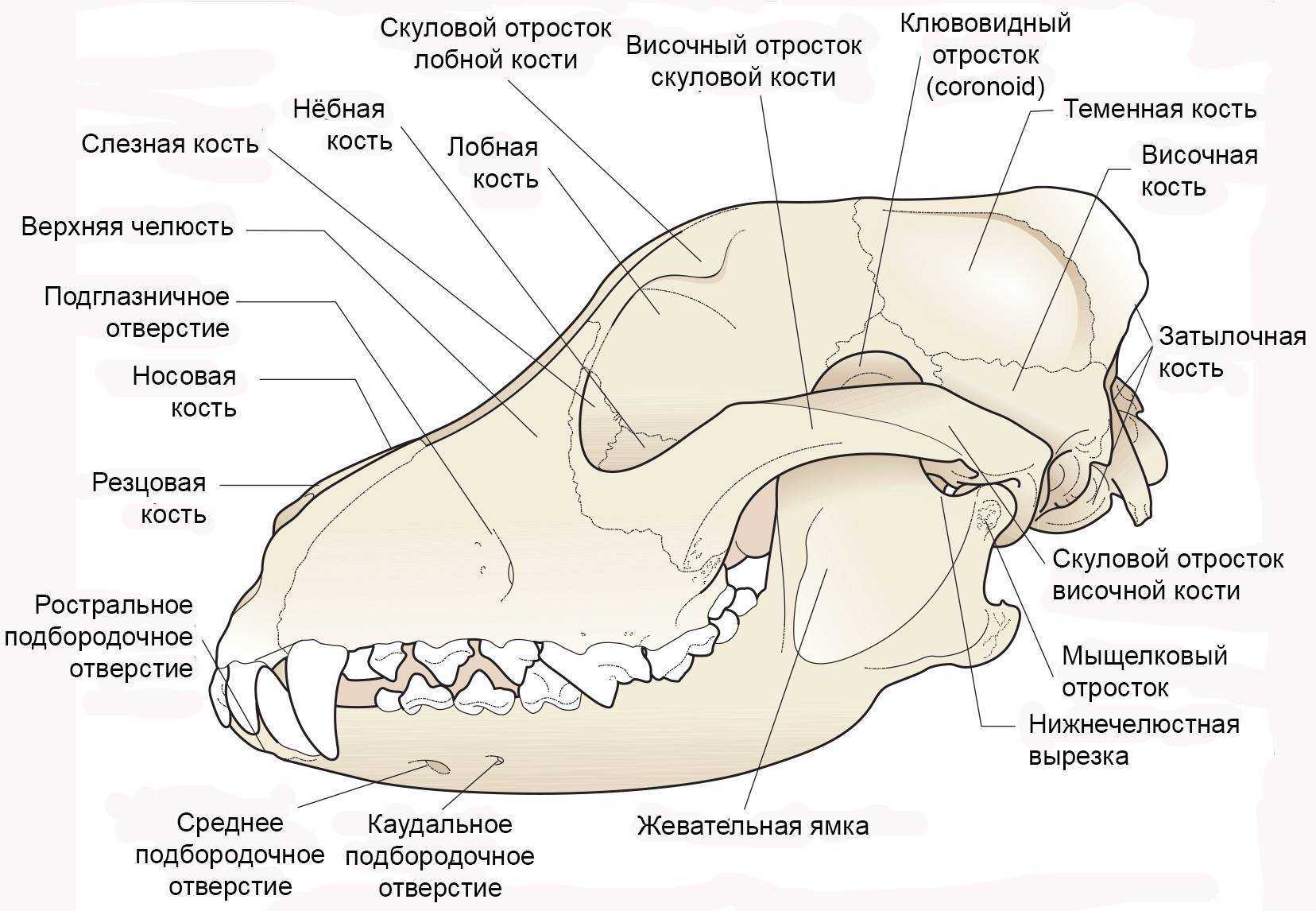 Конечно, изучение данных анатомии пса начинается со строения скелета собаки. Скелет собаки — это основа, за счет которой существуют все внутренние органы и мышцы пса. Каждая составляющая скелета нуждается в особом рассмотрении.