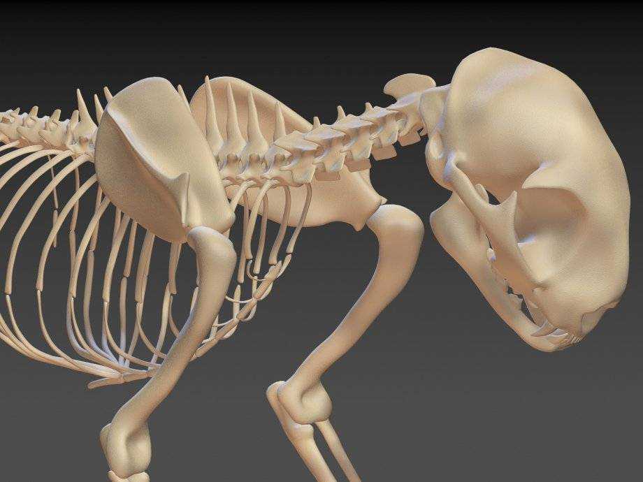 Тело питомца состоит из оси туловища и ребер, которые образуют скелет. Позвоночник формируется из нескольких отделов: