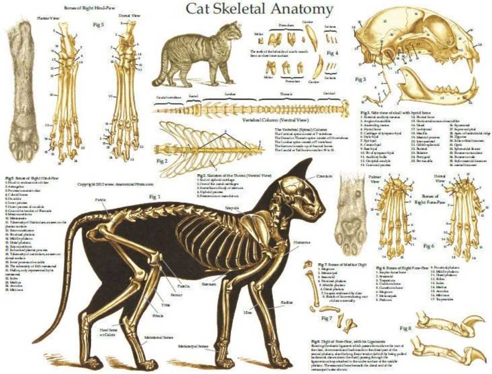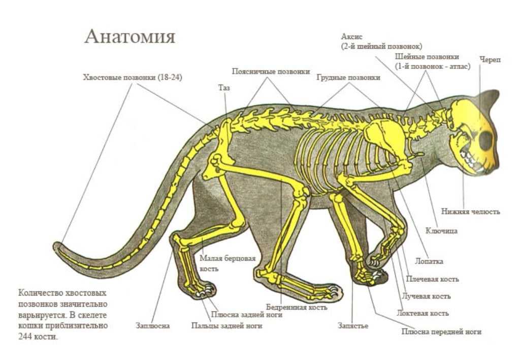 Скелет кота имеет в среднем 250 костей и выполняет важные функции: