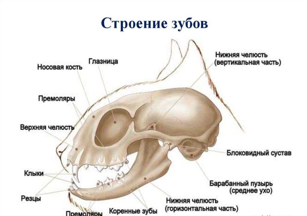 Строение черепа: черепная коробка и лицевая часть, зубы, различия черепа кошки и кота