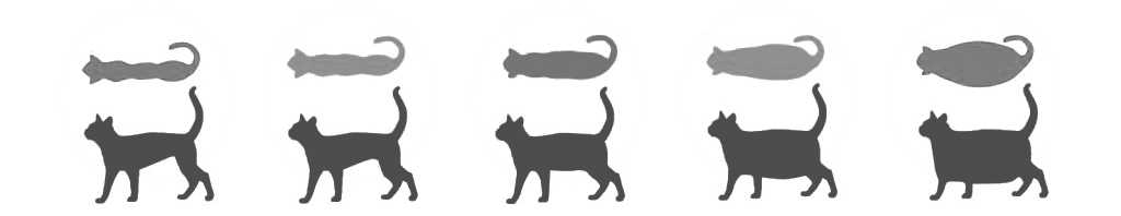 | Избыточный вес | ● Нет видимых ребер.● После грудной клетки талия не видна.● Округлый живот с жировой подушечкой.● Небольшая выпуклость в задней части, если смотреть сверху. |