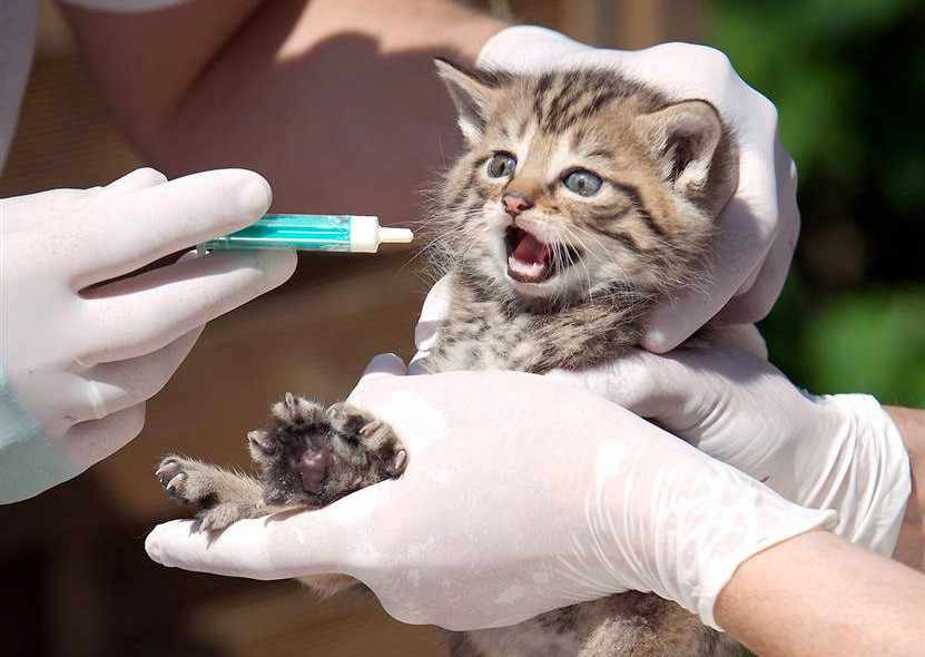 во время выпаивания котенок иногда дерётся и кусает своего владельца, поэтому перед процедурой его можно закутать в простыню;