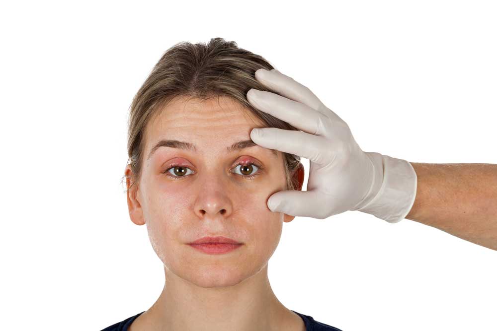 - Века и ткани вокруг лаза отекают, появляется выраженное покраснение, а также появляются болезненные ощущения.
