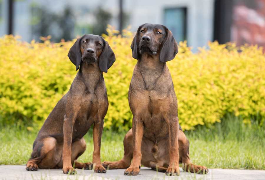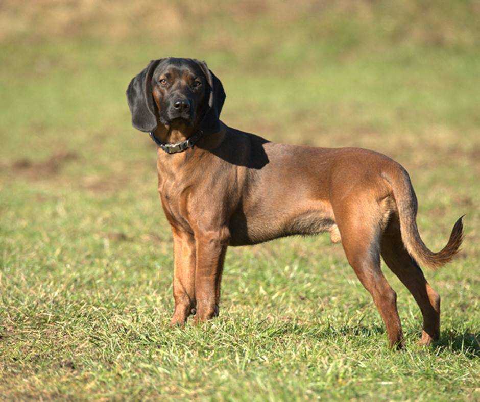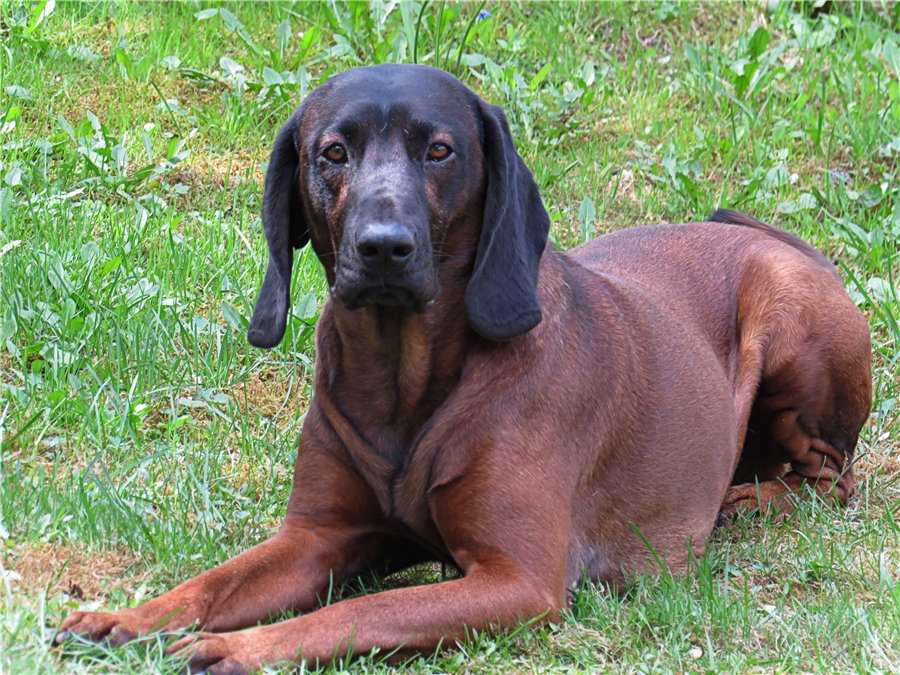 Отличительная особенность баварских гончих – темная маска на морде. Варианты окраса:
