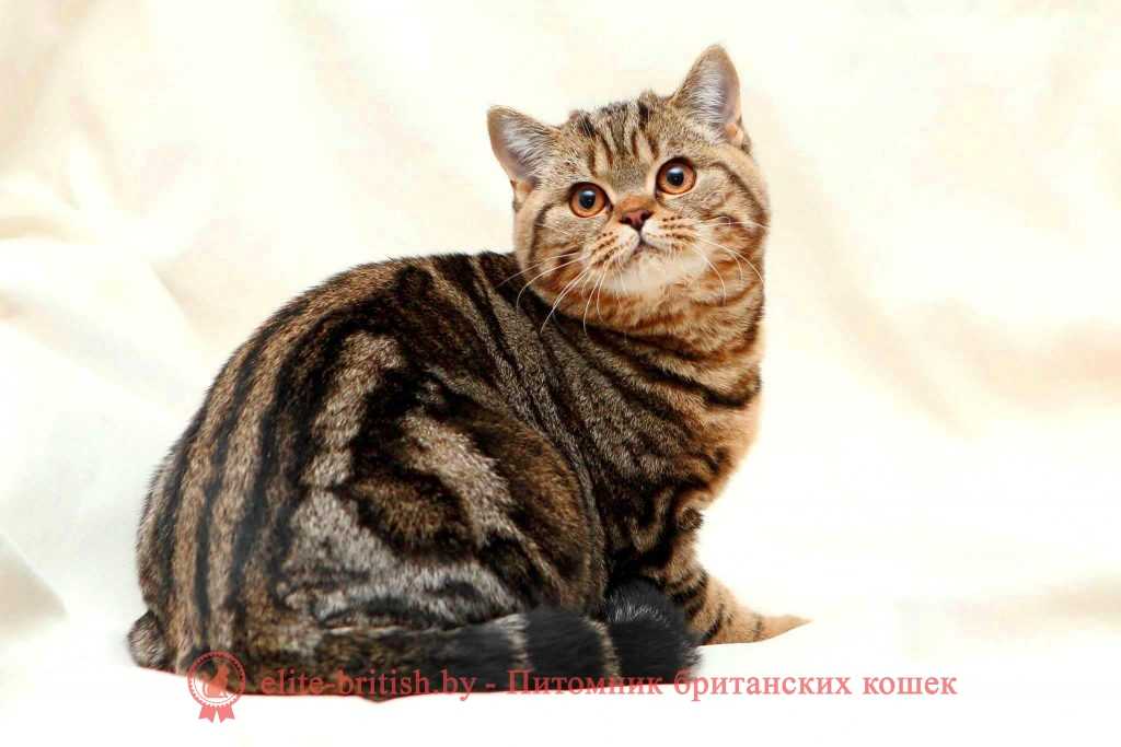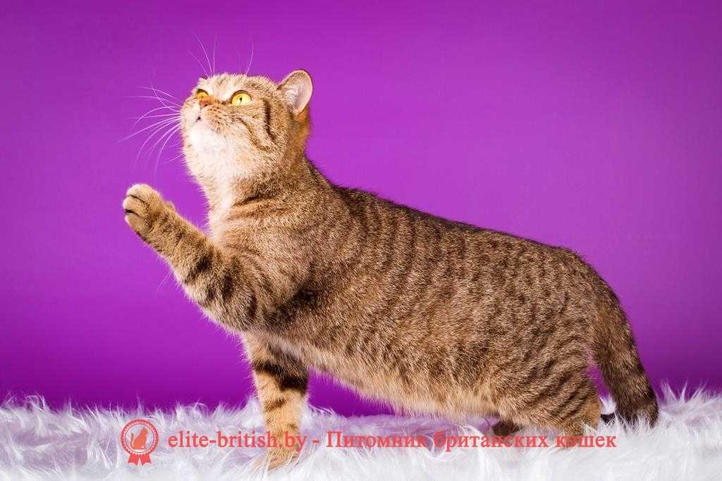 - Британская и шотландская, различающиеся лишь формой ушей. У британца они обычные, у шотландца – загнуты вперед и свисают. У британца самые большие сложности в выведении мраморного табби из-за муарового фактора.
