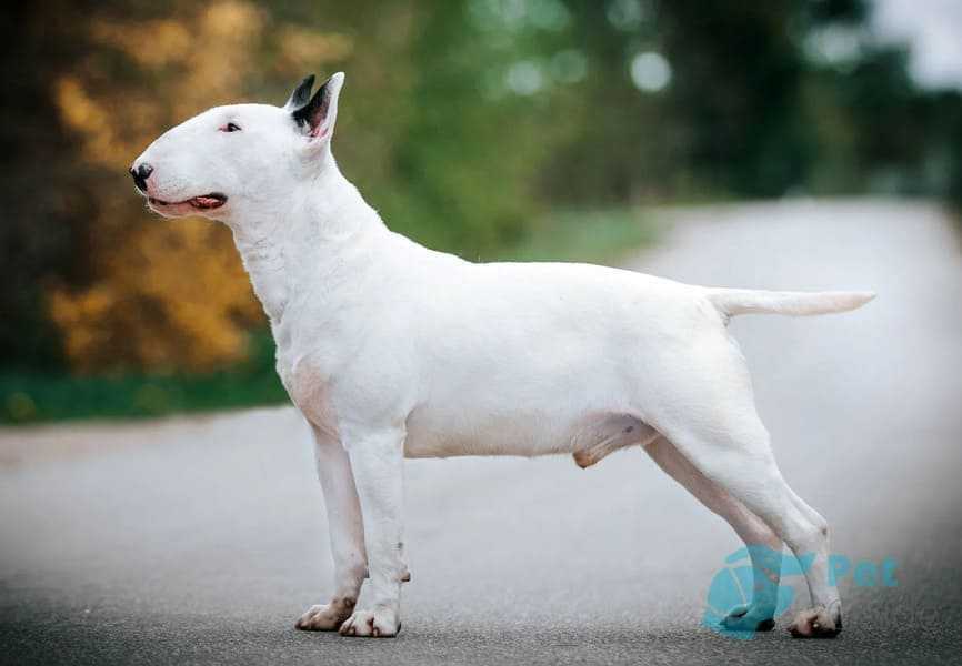 Бультерьер – это средняя по росту собака с крепким телосложением. При этом девочки выглядят тоньше, чем мальчики.