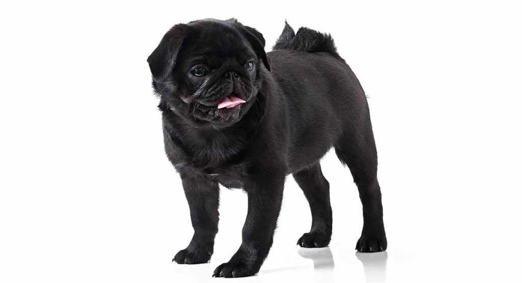 Одна из самых маленьких черных пород собак в нашем списке — это Мопс . Эта порода бывает либо полностью черной, либо палевой с черным лицом и мордой.