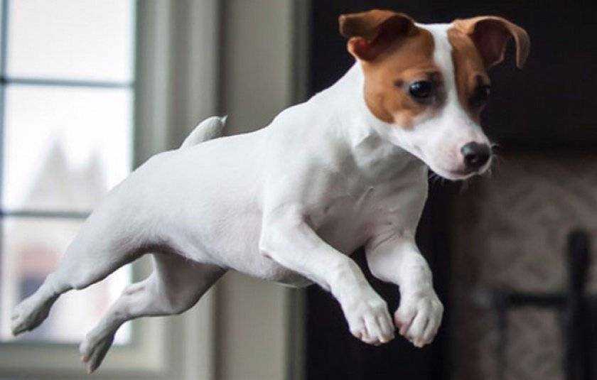 Это собаки-прыгуны . Они легко могут прыгать на 1,5 метра в высоту. Очень любят игры с мячом, во время которых могут позволить себе разнообразные прыжки во все стороны. Ещё одна страсть джек-расселов – это рытье ям. Эту особенность надо учитывать оставляя собаку одну во дворе даже на недолгое время. Она легко может сделать подкоп под забор и убежать с участка.