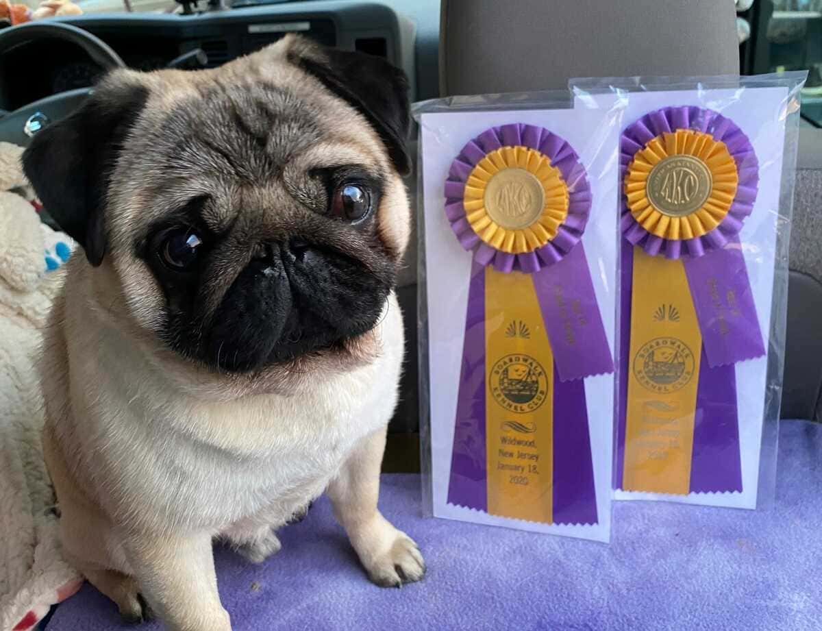 Мопс на выставке
