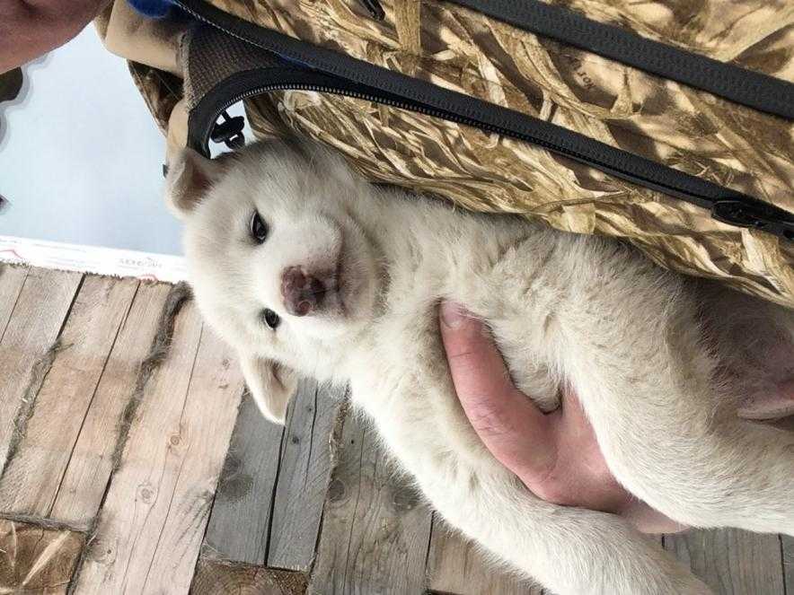 Умка – так можно назвать щенка лайки, который похож на белого медвежонка.