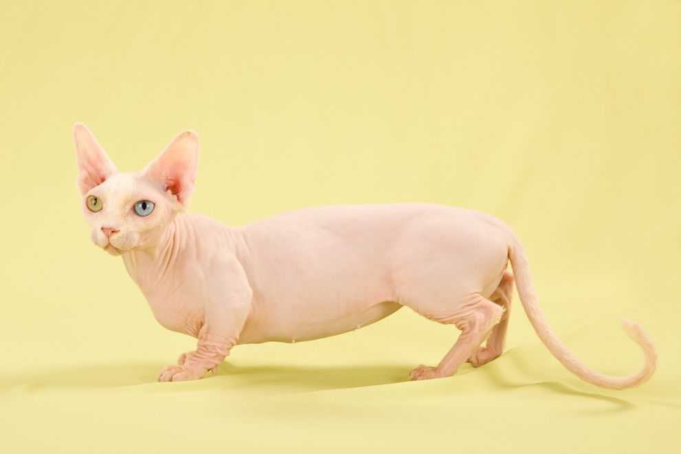 Бамбино. (итал. ребенок). Порода появилась при скрещивании манчкинов и канадских сфинксов. Как и канадцы, представители этой породы шерсти не имеют, допустим лишь легкий пух. Уши питомцев кажутся очень большими. Животные отличаются дружелюбностью, подвижностью и общительностью. Очень привязаны к хозяину. Кошки бамбино отличаются игривостью в любом возрасте.