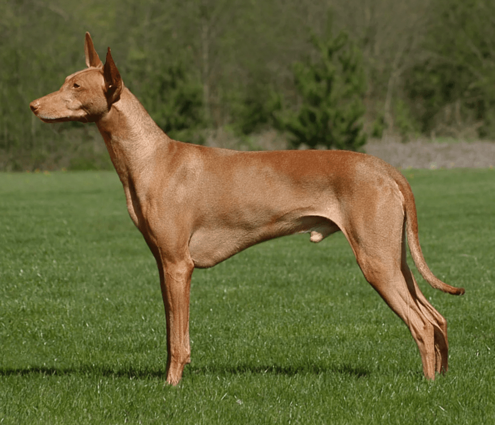 Египетская фараонова собака является самой крупной среди голых пород. Её высота в холке 55–65 см. Крепкое, мускулистое тело покрыто почти незаметным пушком, который, однако, совсем не скрывает красивые линии мускулатуры. Особо выделяется величавостью голова с большими, красиво поставленными ушами, из-за которых собаки и получили своё царственное название. Они довольно своенравны и поддаются своему сильному охотничьему инстинкту, но при этом, способны привязаться к хозяевам. Также фараоновы собаки замечательные друзья и спутники, но не стоит слишком рассчитывать на их сторожевые качества.