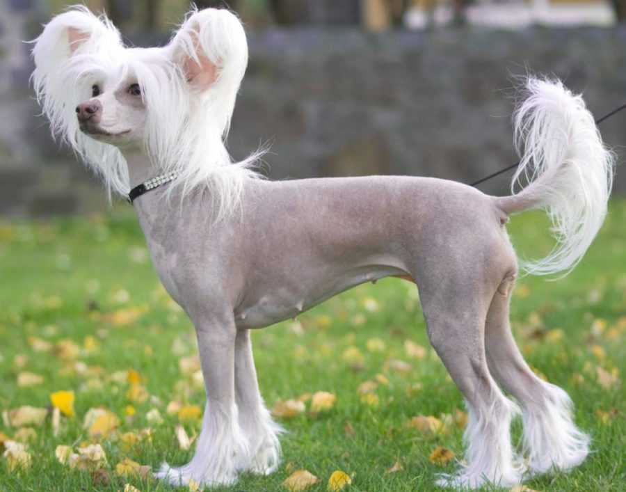 Самая популярная бесшерстая собака, завезенная в Европу в конце 19 века из Китая. Животных нельзя назвать полностью лысыми: для них характерно наличие белого хохолка, очесов на ушах и кисточки на хвосте. Что качается остальных частей тела – они покрыты тонкой эластичной розоватой кожей с яркими коричневыми пигментными пятнами.