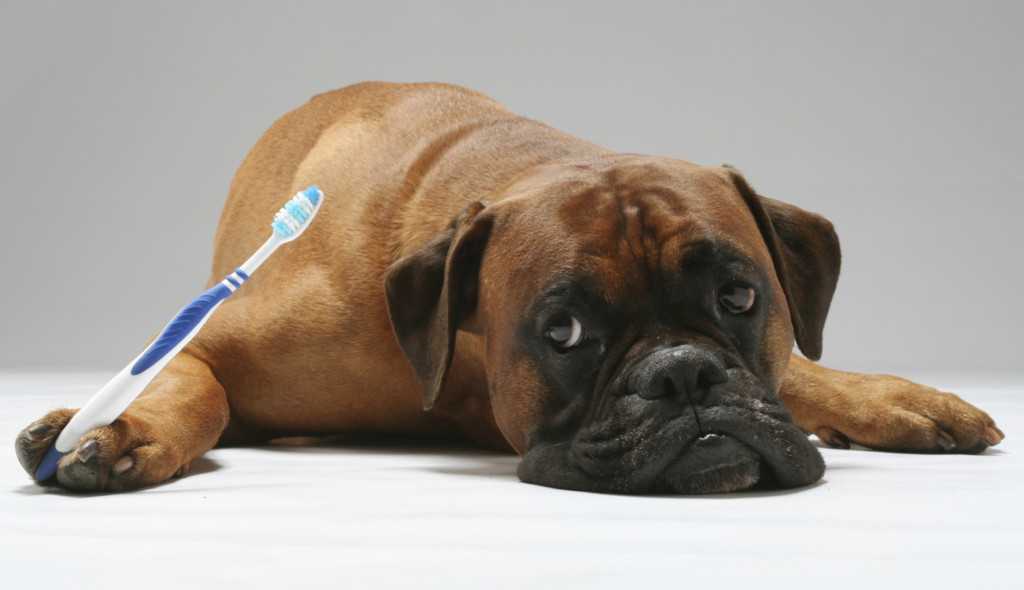 зубы боксеру чистят раз в неделю, используя специальную пасту и щетку