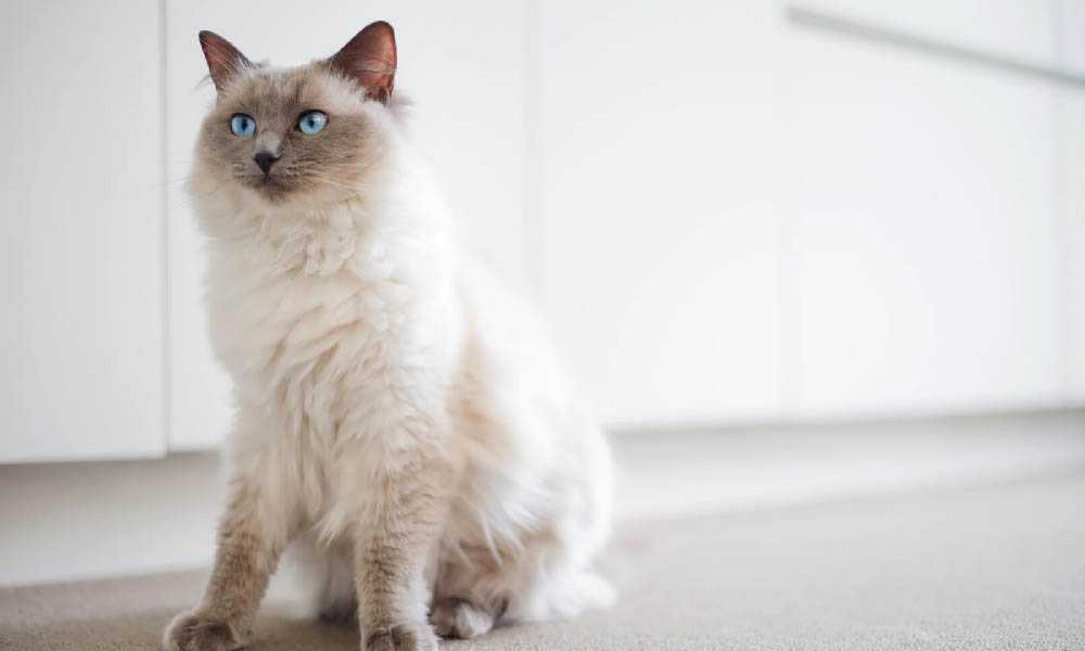 Рэгдолл. Самая крупная порода кошек, с мощным костяком и развитой мускулатурой. Шерсть длинная с подшерстком, полностью копирует колор-поинт сиамов. Глаза голубые. Встречаются особи, у которых на голове вырисовывается символ в виде буквы «V», белый нагрудник или «носочки». Такая расцветка допустима стандартом. Рэгдоллы обладают прекрасным характером, любят ласку и нежность.