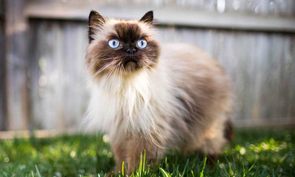 Гималайская. Кошки гималайской породы обладают крепким телосложением, пушистой шерстью, которая нуждается в постоянном вычесывании. Голова у животных круглая с маленькими ушками. Глаза такие же голубые как у сиамов. Это дружелюбные создания, обожающие ласку. Любят сидеть на руках у владельца и мурлыкать.