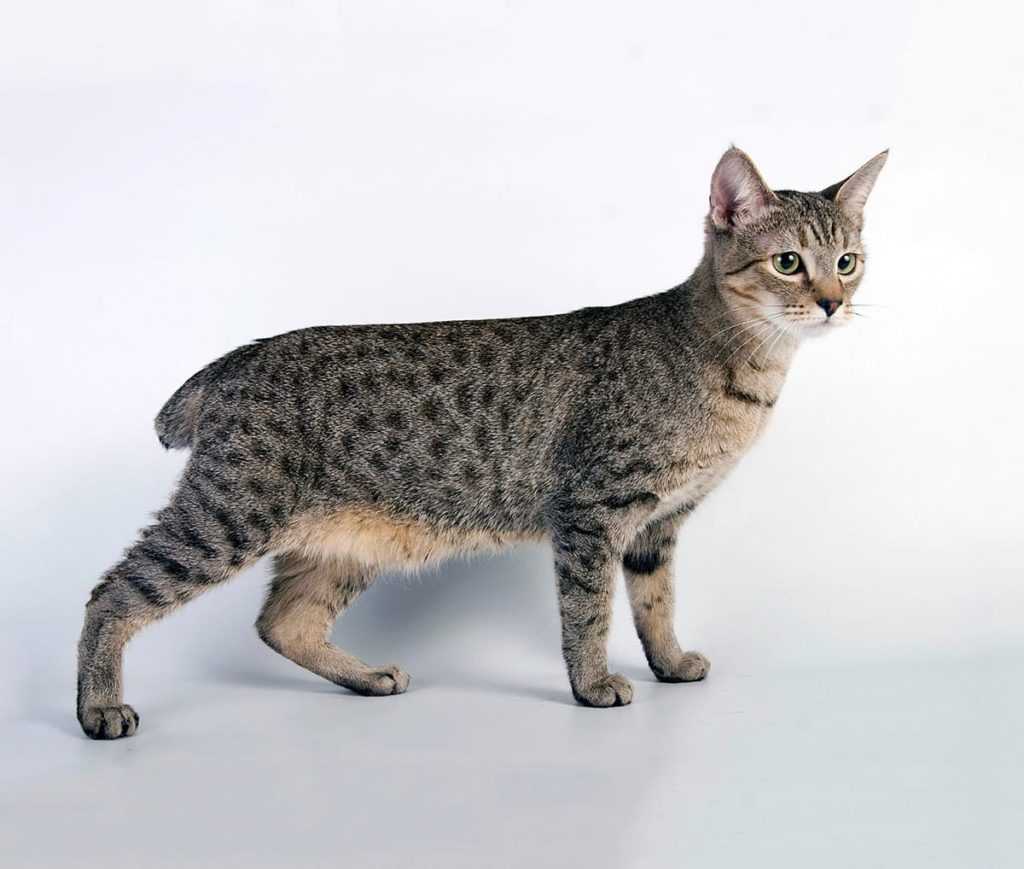 Одна из самых редких и древнейших пород, которая происходит от обычных египетских кошек. Эти питомцы имеют темный пятнистый окрас — серебристый, бронзовый или дымчатый.