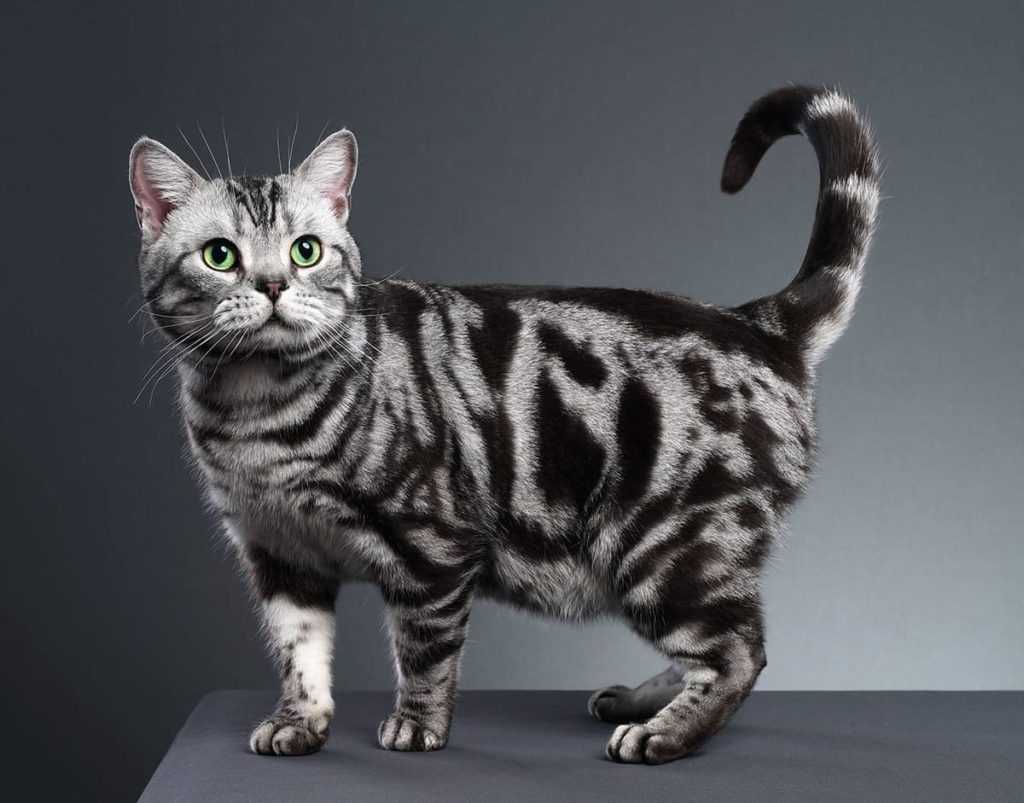 Кошки этой породы отличаются мускулистым сложением, крепкими лапами и развитым охотничьим инстинктом. Наиболее популярный окрас Американцев – silver tabbie (крупные темные отметины на серебряном фоне). По характеру питомцы являются «золотой серединой» – в меру игривы, уравновешенны, преданы хозяевам, но без излишней навязчивости.