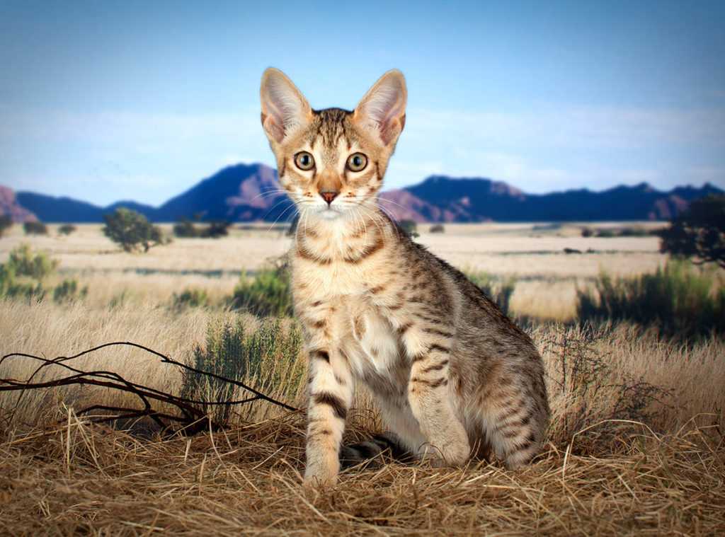 Помимо дороговизны, эта кошка является самой большой и больше всех гибридов похожа на дикую кошку. В нашей стране нет ни одного такого котенка, а ближайший к нам зверь живет в Риге. Цена за этого красавца начинается от $4000, а за племенного — от $8000. Саванна — плод любви дикого кота сервала и обычной домашней кошки. Выглядит котик, как папа, — крупный, длинноногий, длинношеий, с огромными ушами.