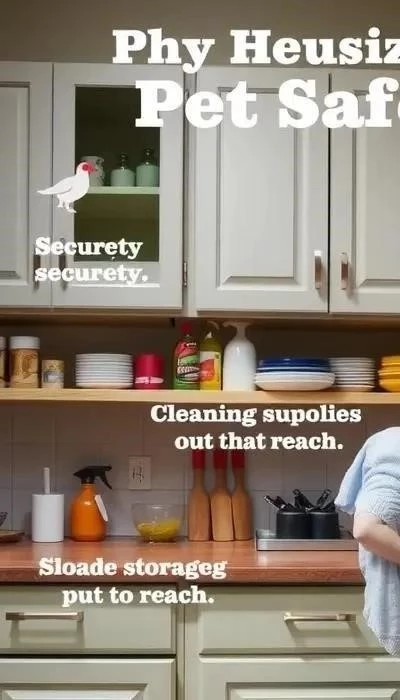 Бытовая химия (моющие средства, отбеливатели) должна быть надежно закрыта и храниться в шкафу, до которого питомец не сможет добраться. Острые предметы (ножи, вилки) также должны быть вне досягаемости. Горячие поверхности (плита, духовка) представляют ожоги.