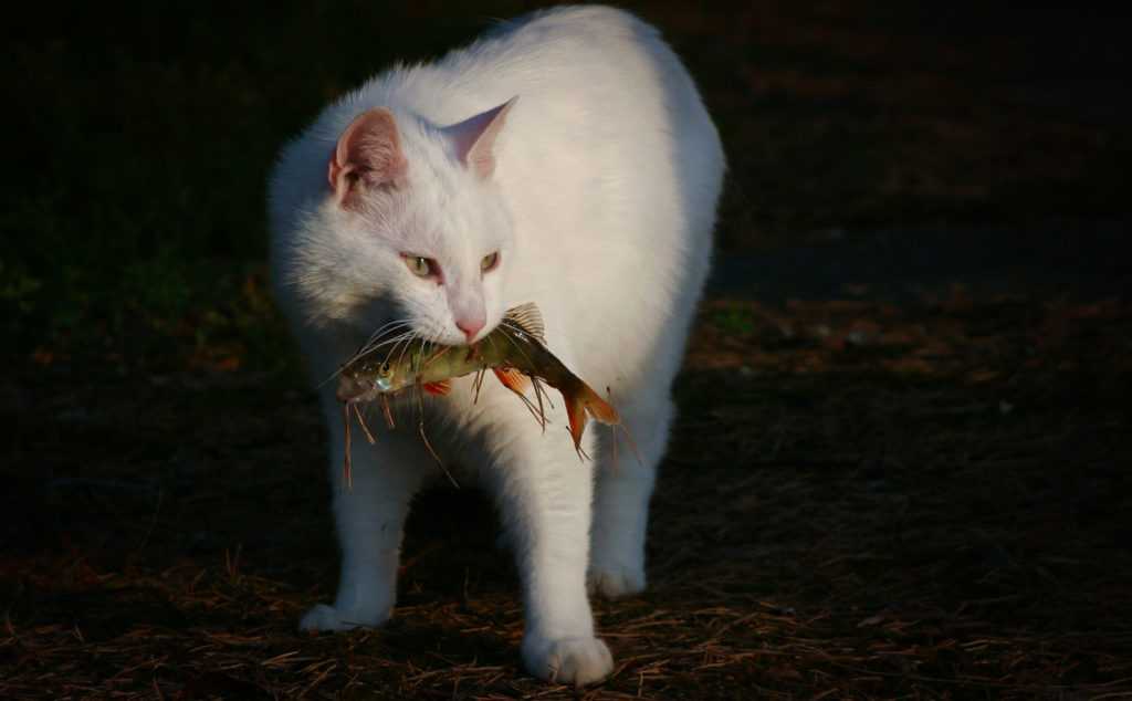 - Посредством ловли рыбы эти животные удовлетворяют охотничий инстинкт. Несмотря на то, что большинство кошек боятся воды, многие из них любят порыбачить. Одичавшие и домашние животные часто охотятся в период нереста, когда рыба выбрасывается на берег или плавает на мелководье. Поймать такую добычу, даже довольно крупных размеров, коту проще, чем грызуна или птицу.