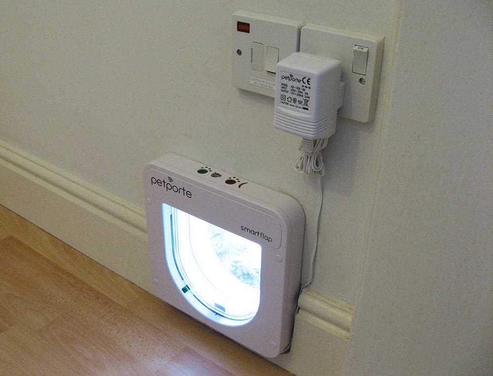 - Электронная конструкция – надежная, но в то же время самая сложная. Она рекомендуется для хозяев, которые боятся, что к ним в дом проникнет постороннее животное. Когда любимица выходит из дома, светодиод на дверце меняет цвет. Самый современный вариант предполагает, что обратно вернуться может только животное, в ошейник которого вмонтирован чип. Благодаря ему и будет открыта дверца.