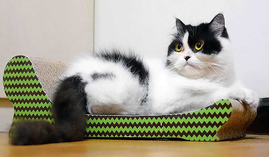 Чтобы сохранить целостность мебели в доме и не допускать царапания стен, приобретите специальную конструкцию для чесания коготков – когтеточку. Желательно это сделать сразу после появления питомца в доме, чтобы быстро приучить его к данному изделию, позволяющему выполнять маникюрные процедуры без порчи имущества.